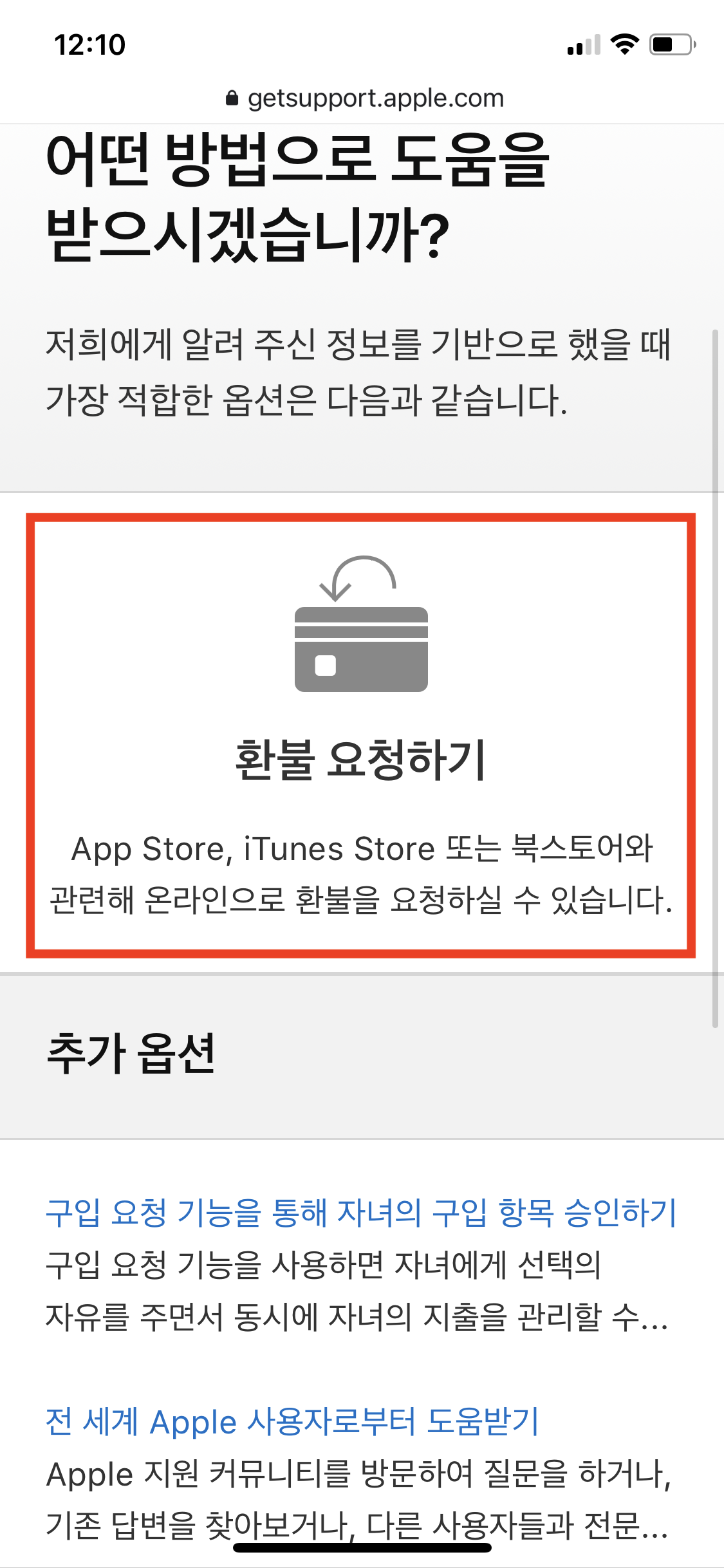 iPhone 또는 iPad를 사용해 구매했거나 iTunes를 통해 Youtube 유료 멤버쉽에 가입한 경우, 환불을 요청하려면 Apple 지원팀에 문의해야 한다고 한다. 친절하게도 지원팀에 문의할 수 있는 이동링크를 바로 제공하고 있다. 파란색 텍스트를 선택하자.