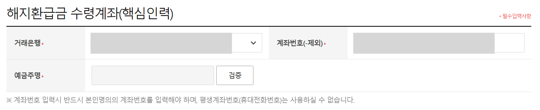 그 다음 해지환급금 수령계좌를 확인하고 검증 버튼을 클릭한다.