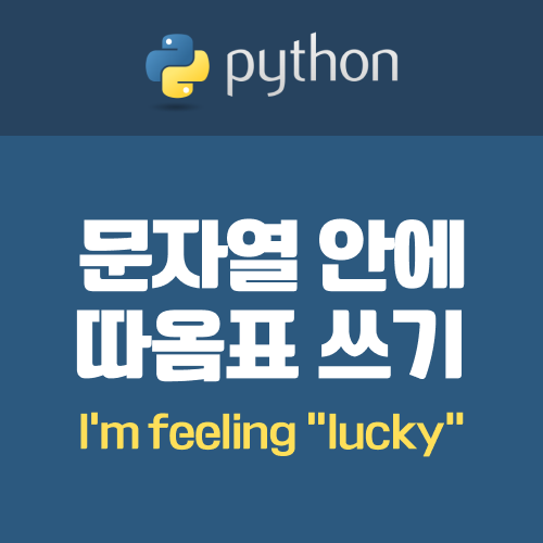 그렇다면 I'm feeling "lucky" 처럼 문장 내에 작은 따옴표와 큰 따옴표가 동시에 쓰여져야 한다면? 그럴 때에는 따옴표 앞에 역슬래시(\)를 써주면 된다. 그냥 \' 와 \" 를 세트라고 생각해버리면 편할 것 같다.