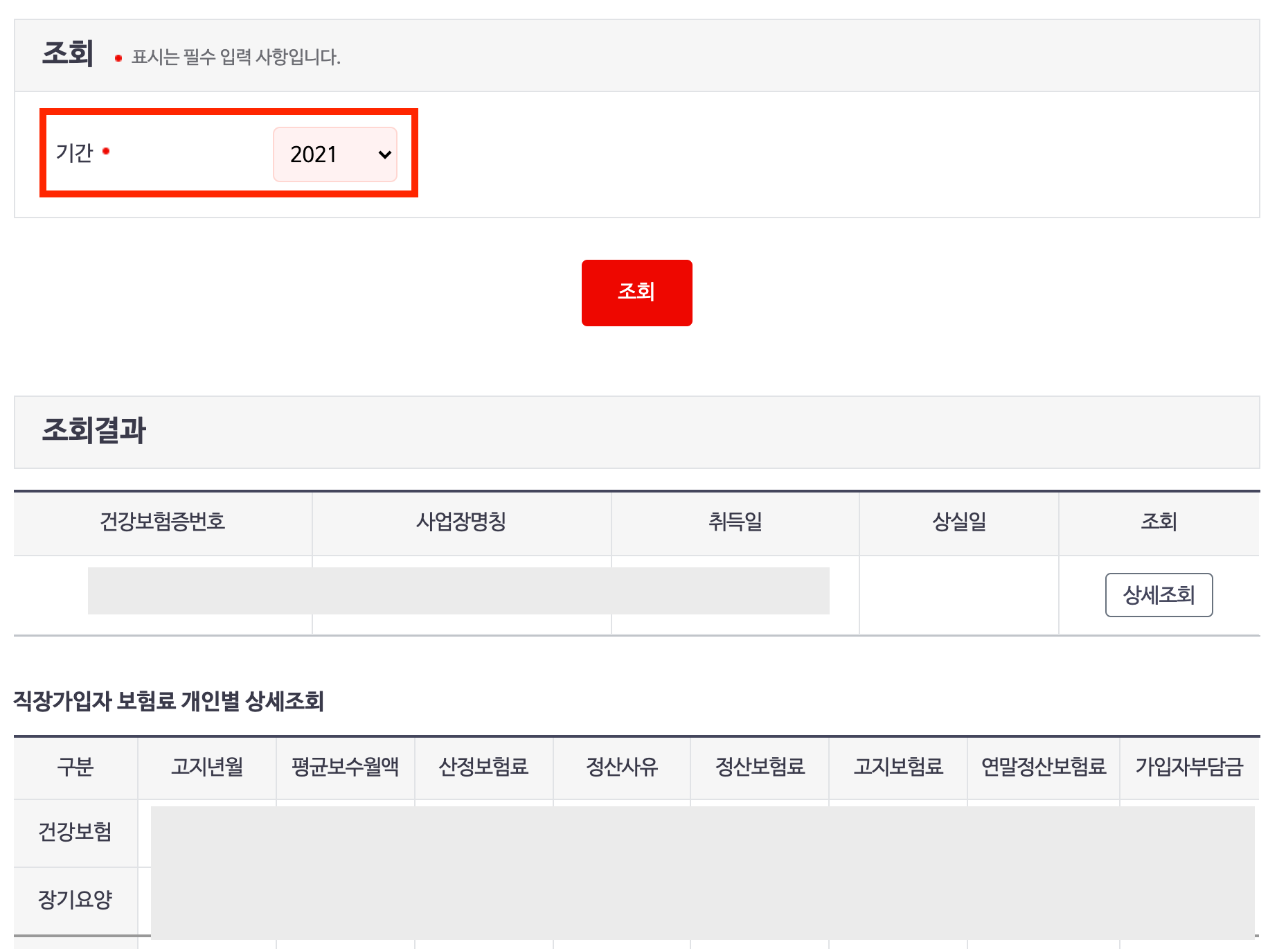 우측에서 기간을 2021년으로 설정한 후에 빨간색 조회 버튼 클릭!
