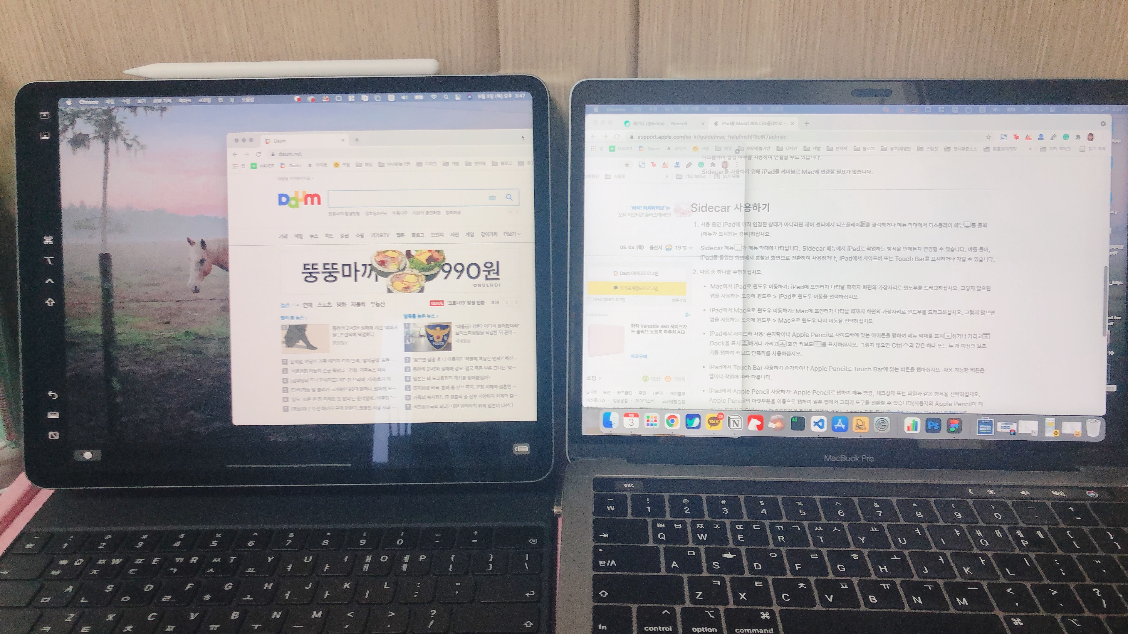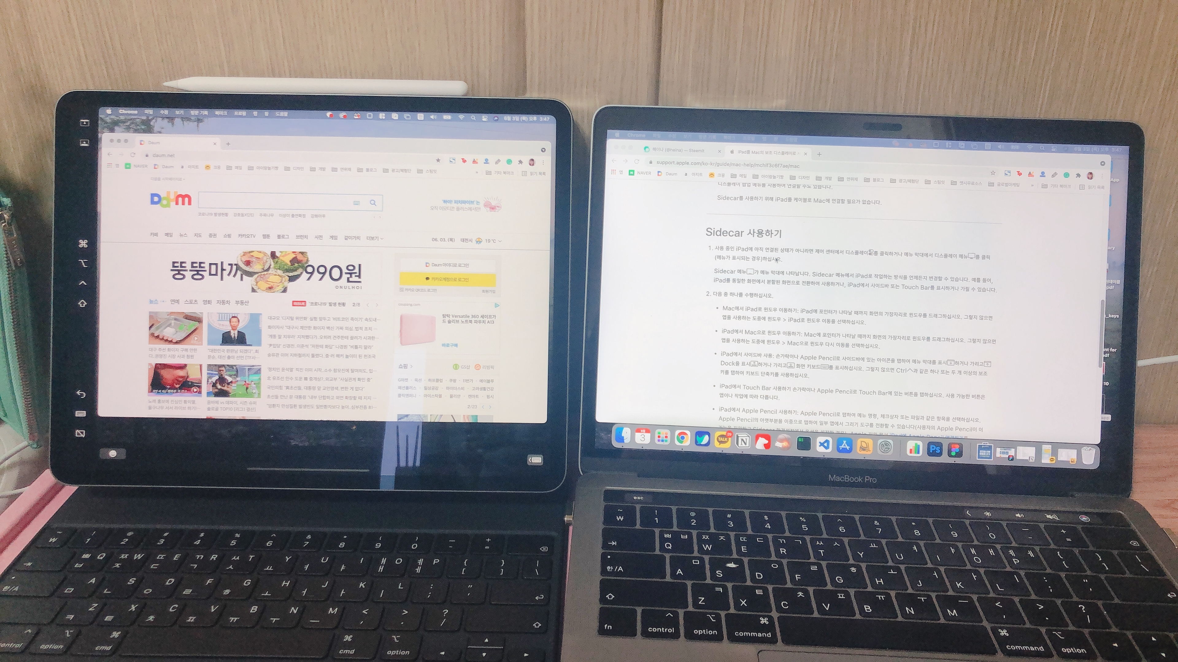 나는 맥북이 13인치라 작업할 때에 화면이 작아 답답할 때가 있다. 아이패드 프로와 맥북을 사이드카로 손쉽게 연동하여 듀얼 모니터로 사용할 수 있다고 하여 이용해 보았다.
