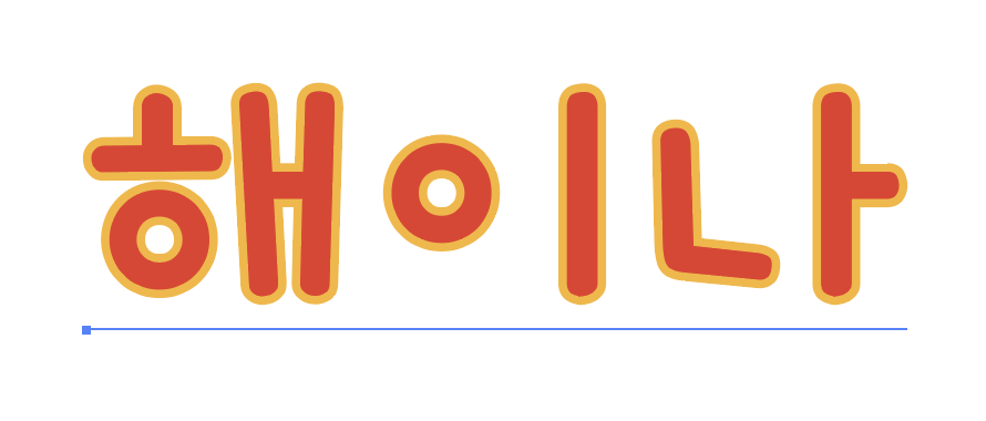 개발언어도 그렇고 디자인툴도 그렇고, 뭐든 설명할 때는 예제와 함께 보여주는 것이 최고인 것 같다. 아래와 같이 텍스트로 해이나를 쓰고 노란색으로 테두리도 주었다.