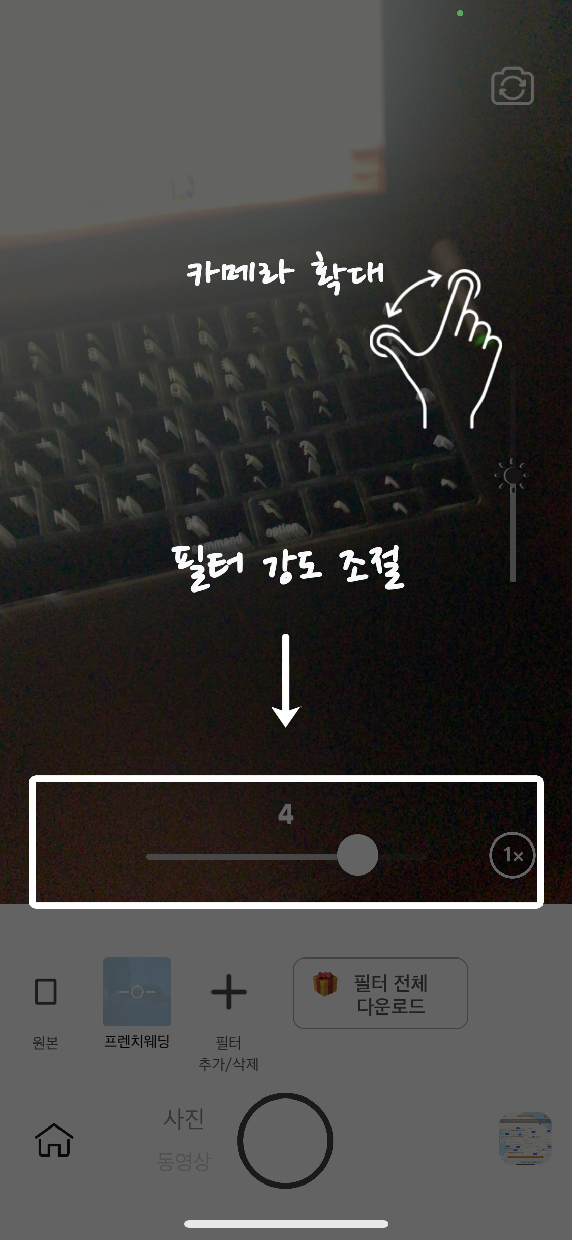 다른 카메라 어플들을 사용해 본 적이 있다면 크게 어렵지 않은 구성이다.