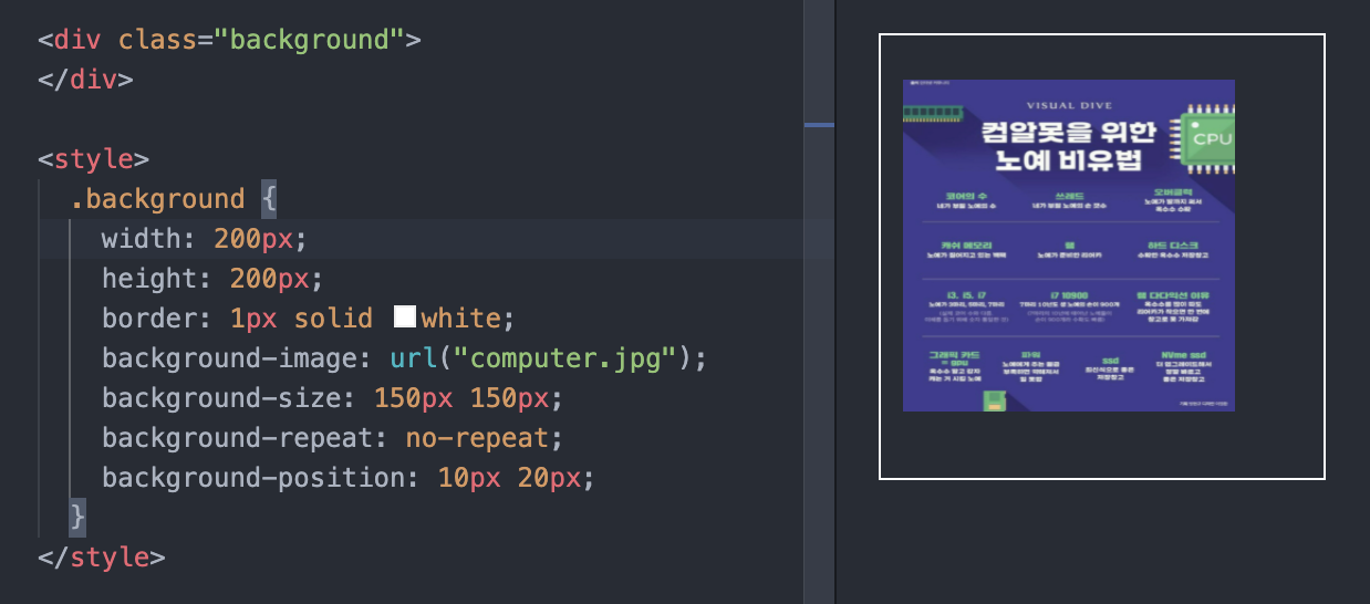 배경이미지의 사이즈를 조절하는 CSS 태그와 속성에 대해서 알아보자.