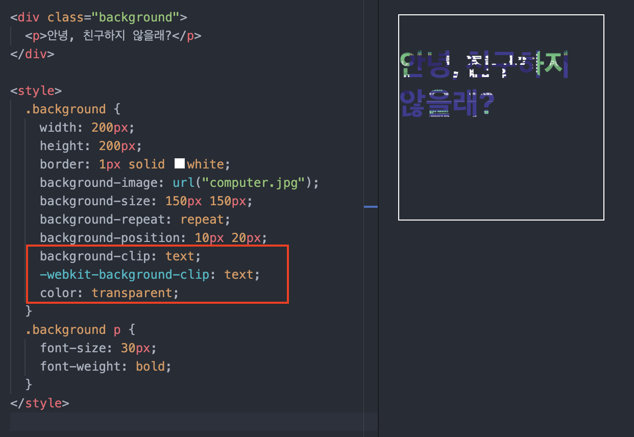 아래는 배경 이미지를 텍스트에만 보이게 처리한 예제이다.