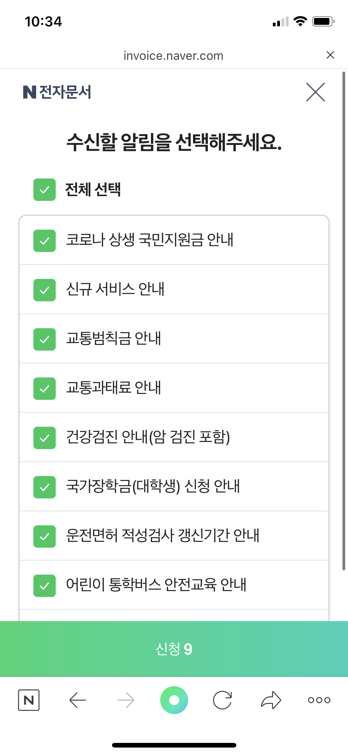 국민비서 신청하러가기 텍스트를 누르면 N전자문서 페이지로 이동한다.