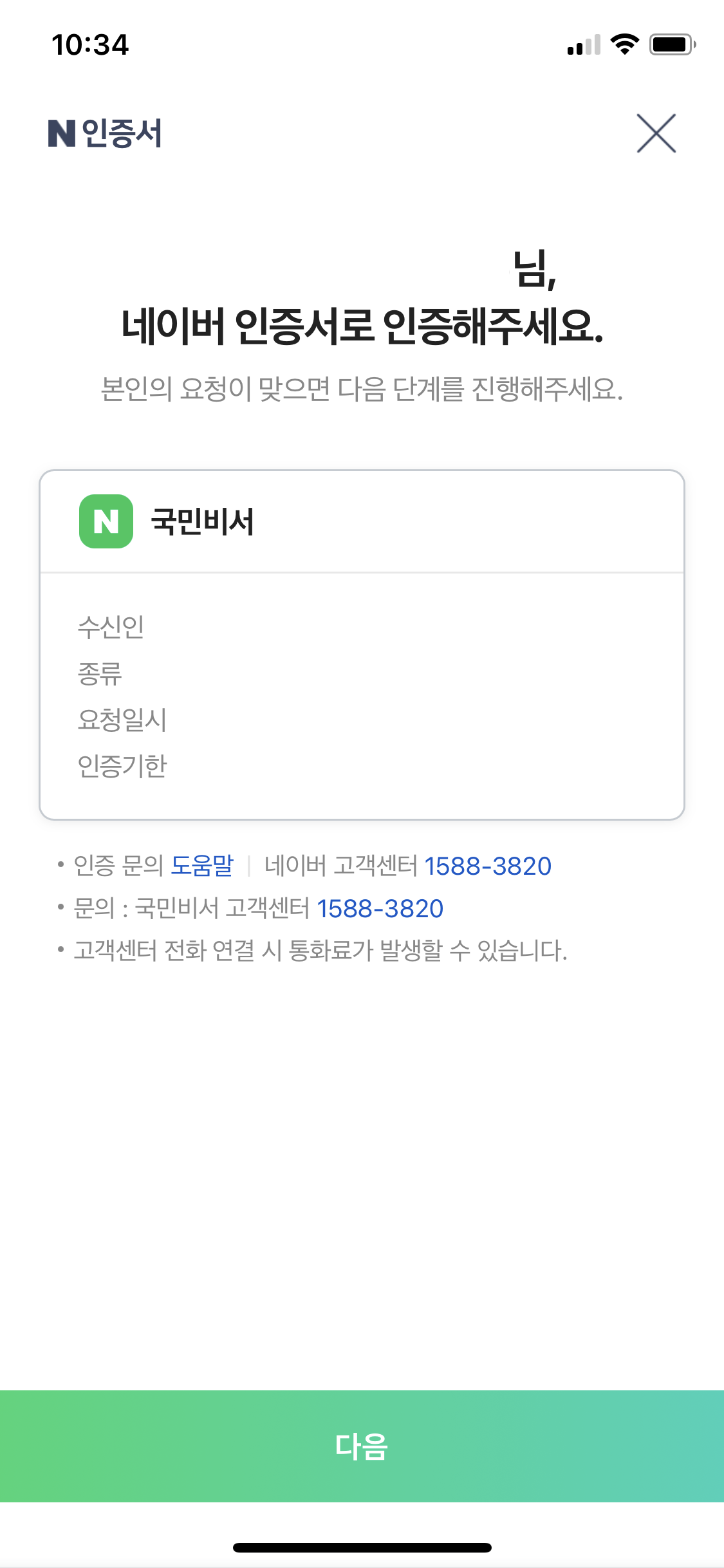동의박스 체크 후에 네이버 인증서를 이용하여 인증을 진행한다. 나는 face ID를 등록해 두어서 빠르고 편하게 인증할 수 있었다.