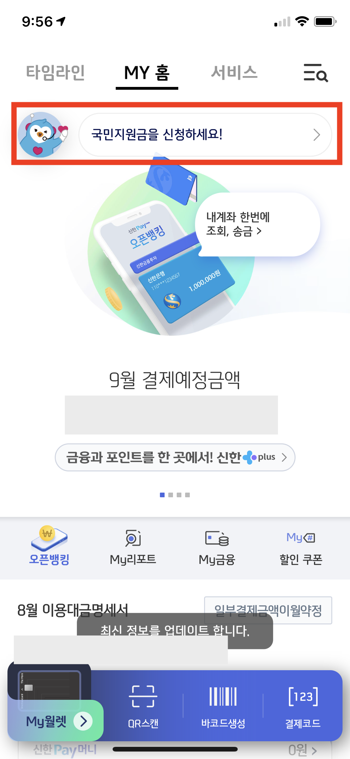 신한페이판 국민지원금 잔액 확인하기