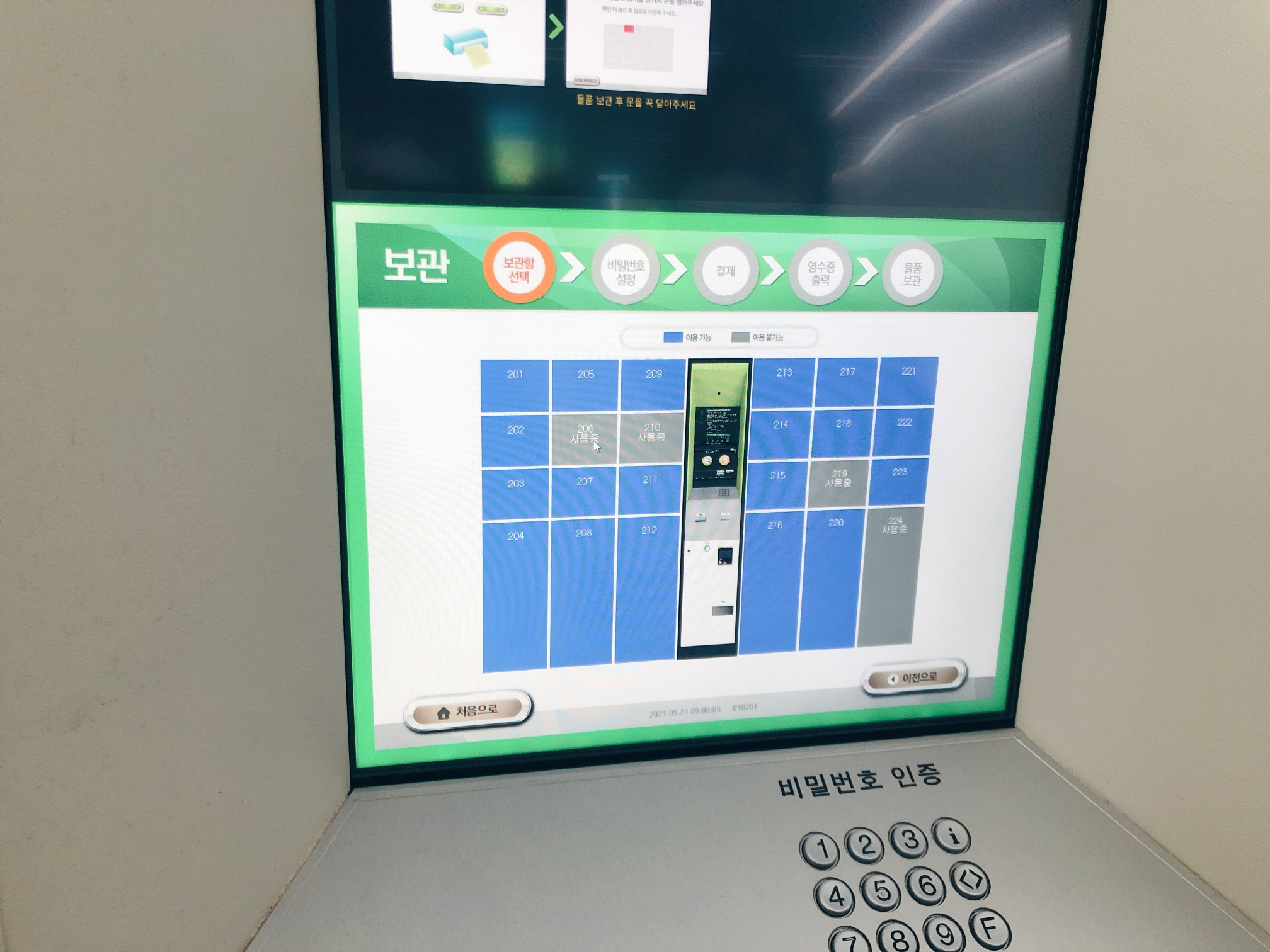 짐을 넣고 문을 닫으면 자동으로 보관함이 잠긴다. 빨간색 불빛은 보관 불가(이미 다른 사람이 보관중), 파란색 불빛은 보관이 가능(비어 있음)하다는 의미이므로 사용 전에 미리 빈 공간을 확인할 수도 있다.