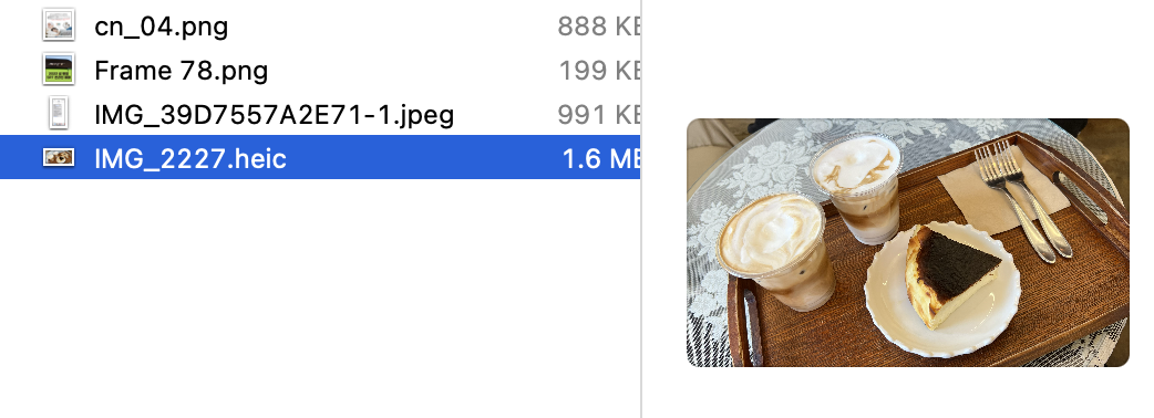 먼저 heic 파일을 준비한다. 처음에 아이폰에서 airdrop을 이용하여 맥북으로 사진을 옮겼는데 확장자가 heic 으로 되어 있고 티스토리 에디터에 첨부를 하면 오류가 발생하여 당황했다.