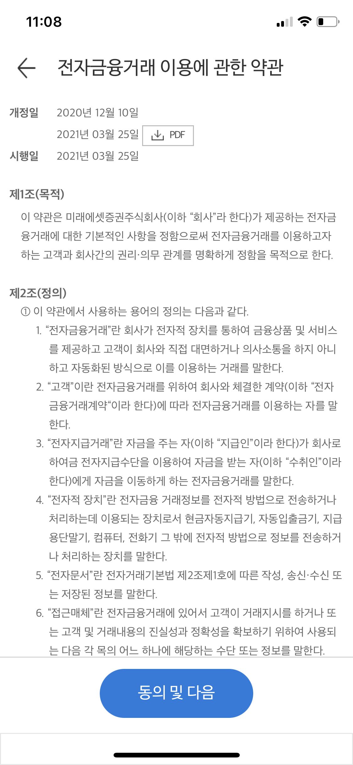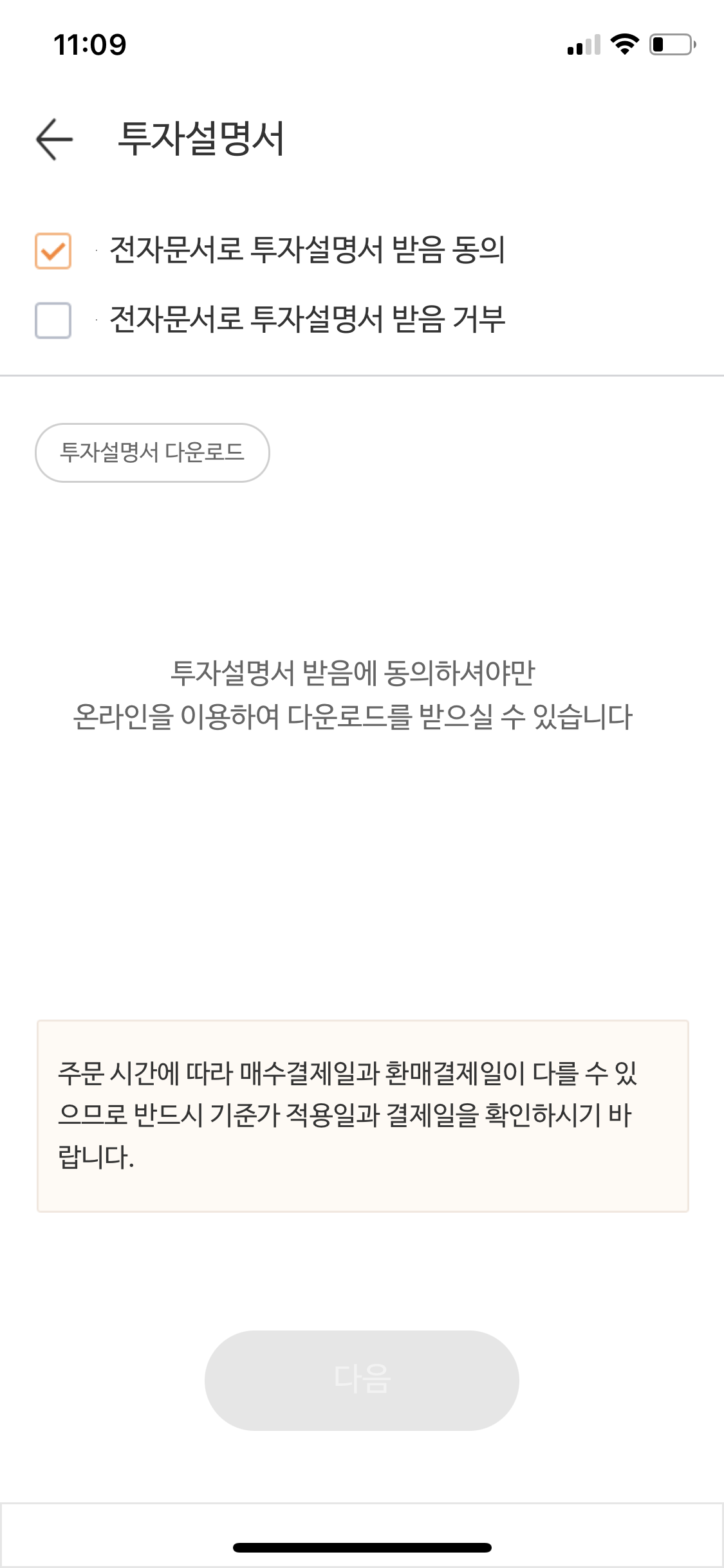 이어서 전자금융거래 이용에 관한 약관, 투자설명서를 차례로 확인한다.
