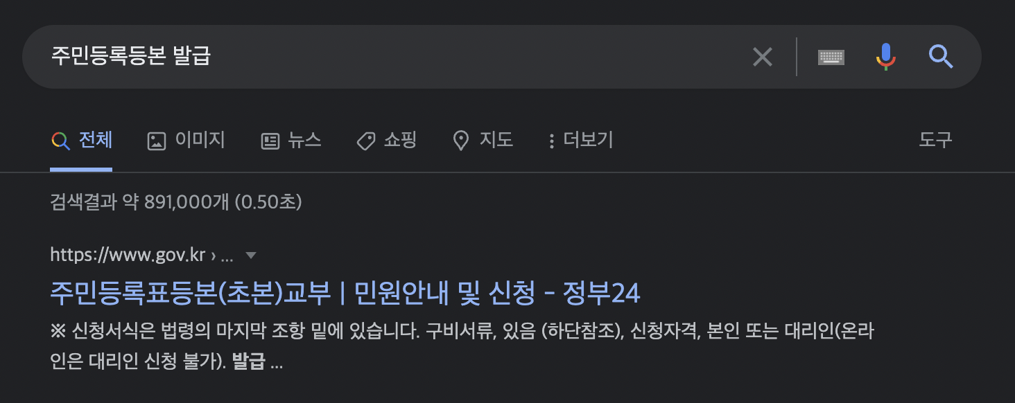 아래 사이트를 클릭하면 정부24 홈페이지로 이동한다.