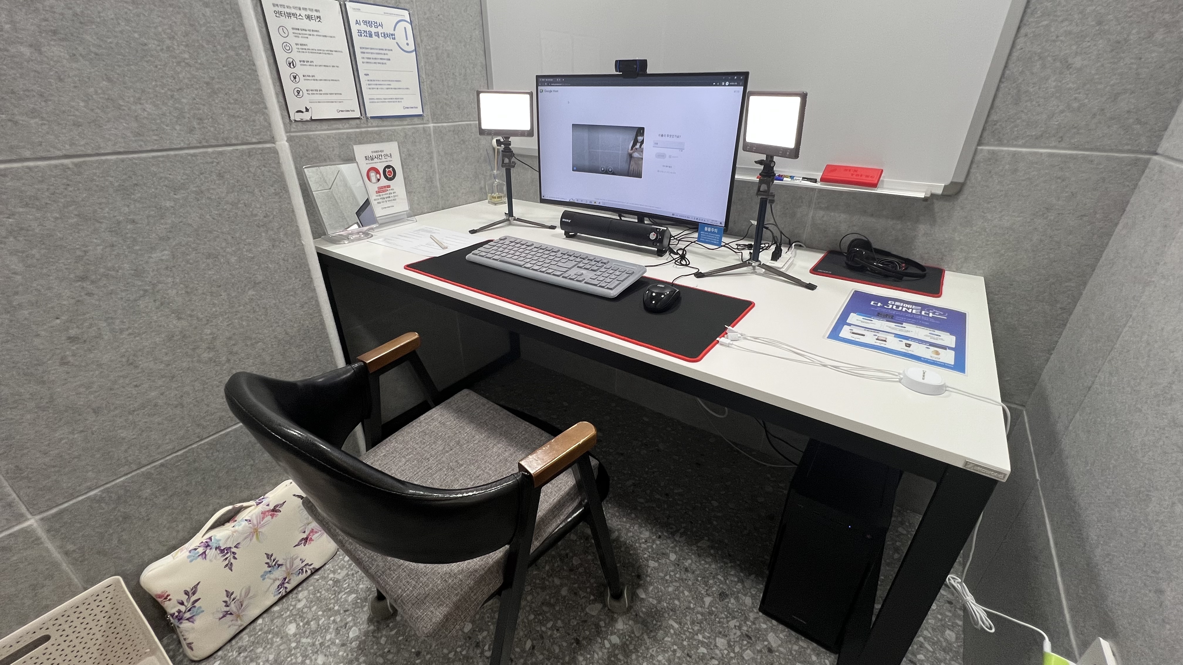 먼저 인터뷰룸 자체는 그리 크지 않다. 책상과 의자하나가 딱 들어가는 공간이라고 보면 된다. 윈도우 운영체제 컴퓨터가 한 대 연결되어 있고 조명, 이어폰 등도 모두 준비되어 있어 정말 몸만 가도 인터뷰 면접을 진행하는 데 전혀 문제가 없겠다는 생각이 들었다. 이런 맞춤 서비스를 제공하는 공간이 있다니...ㅜㅜ(감동)
