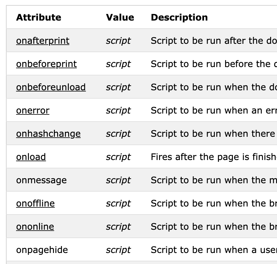 HTML Event Attributes