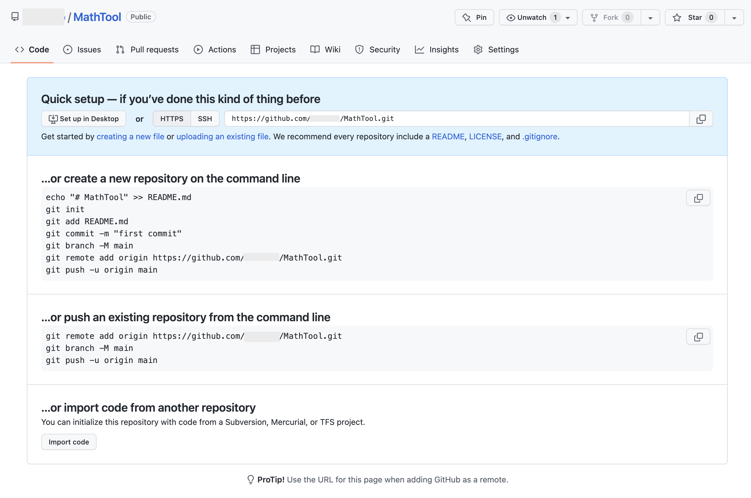 방금 생성한 프로젝트를 선택하면 해당 저장소의 경로와 저장소 설정에 대한 간단한 command line을 확인할 수 있다. 이제 깃허브에 가입하고 저장소도 만들었으니 다음 포스팅에서는 기존에 로컬(Local)에서 버전관리하던 파일을 깃허브 원격(Remote) 저장소에 업로드하는 방법에 대해서 알아보도록 하겠다.