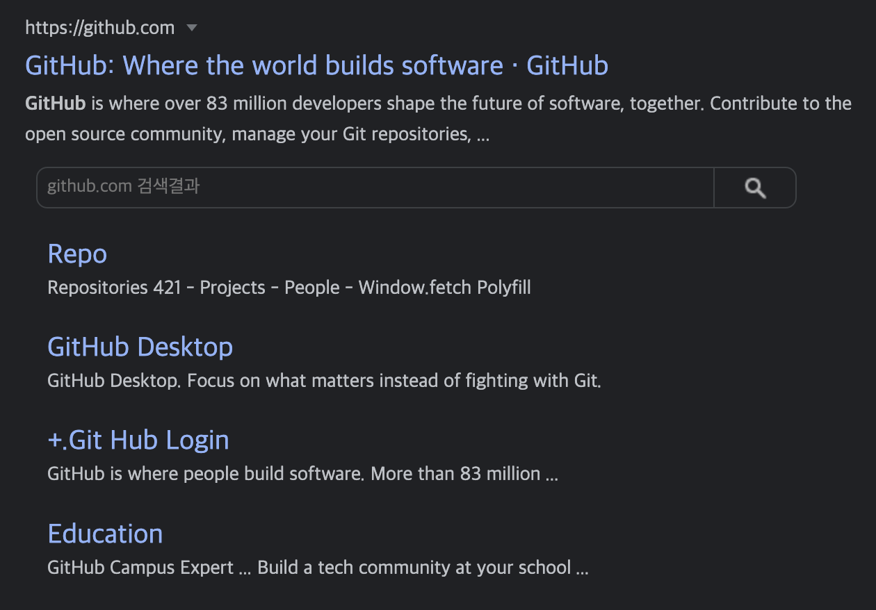 구글 검색창에 Github라고 검색해서 나오는 첫번째 사이트를 선택해도 된다.