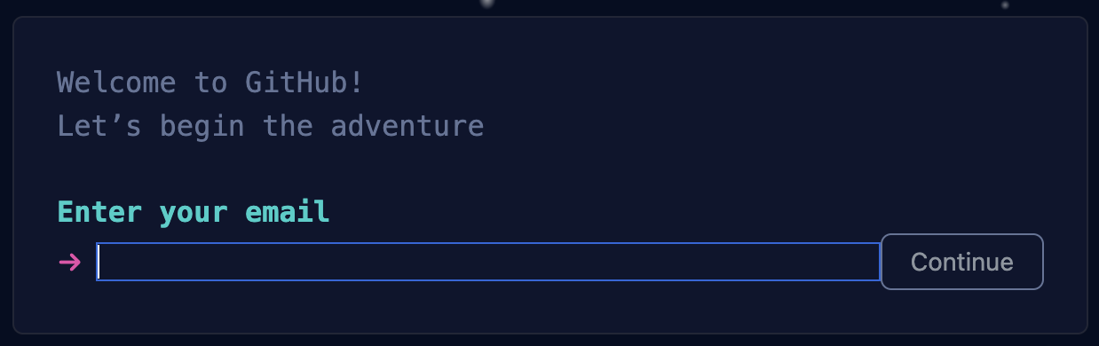 환영한다는 문구와 함께 이메일을 입력하는 텍스트창이 나온다. 계정 로그인에 사용할 이메일 주소를 입력하면 된다. (깃허브는 로그인 시에 username 혹은 이메일을 사용함)