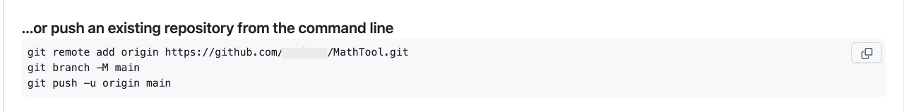 먼저 깃허브 웹사이트에 접속해서 로그인을 하고, 지난 번에 생성했던 저장소로 이동한다. (깃허브 링크는 https://github.com/) 나는 MathTool 이라는 저장소를 만들었는데, 계정 로그인 후에 좌측 사이드바에서 확인이 가능하다. 만약 저장소를 여러개 생성했다면 이 부분에서 카테고리처럼 나열되어 보여지고 각각의 저장소를 클릭하여 이동할 수 있다.