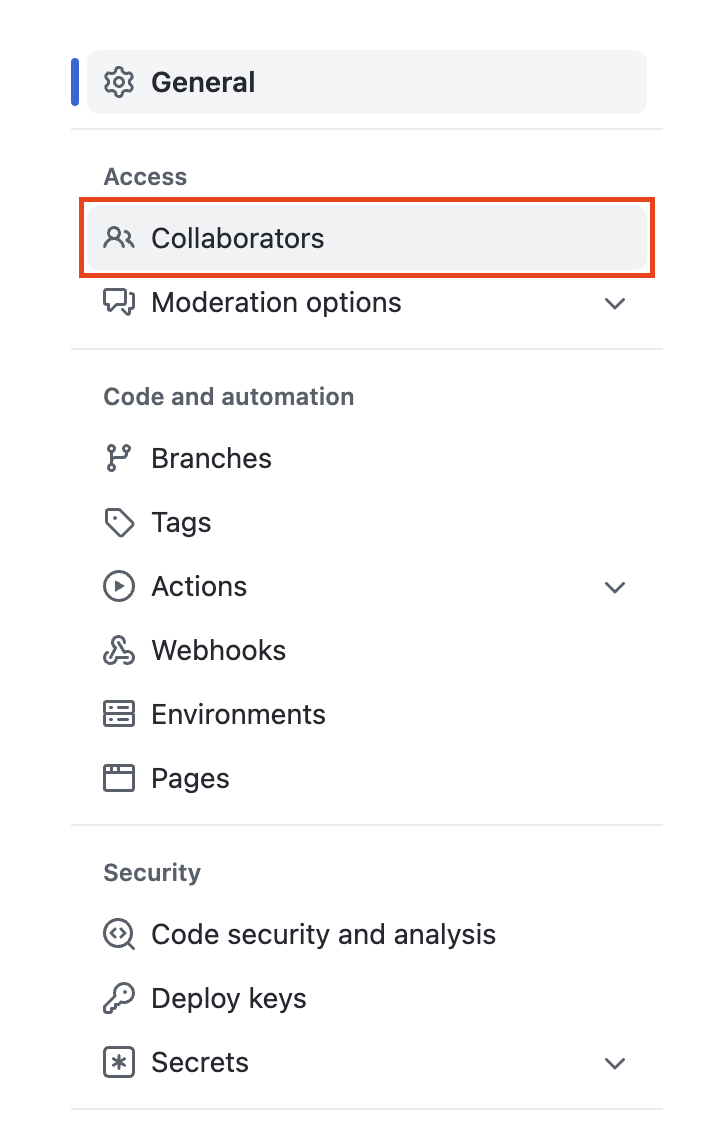 그 후 변경되는 페이지 좌측 메뉴바에서 Collaborator를 선택한다.