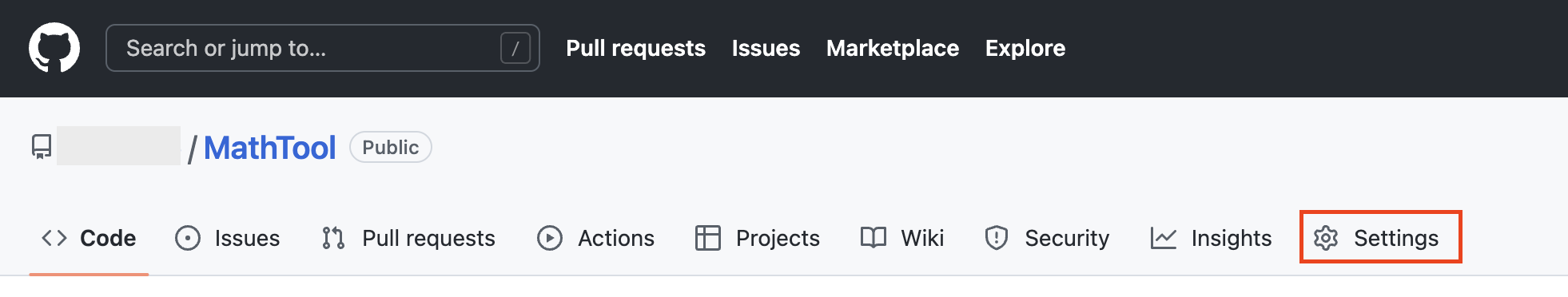 깃허브 홈페이지(https://github.com/)에서 로그인하고 해당 디렉토리로 이동한다. Code, Issues, Pull requests... 메뉴바의 마지막에 위치한 Settings를 클릭한다.