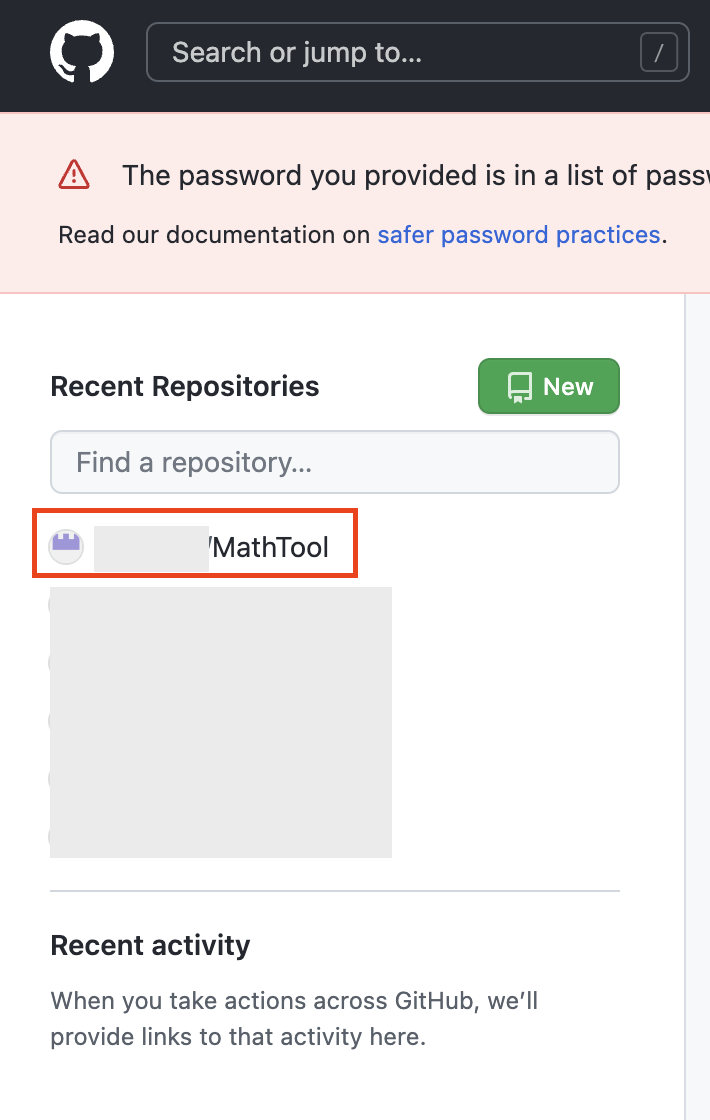 나의 Repository 목록에 방금 수락한 MathTool Repository가 추가되었다.