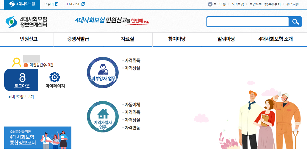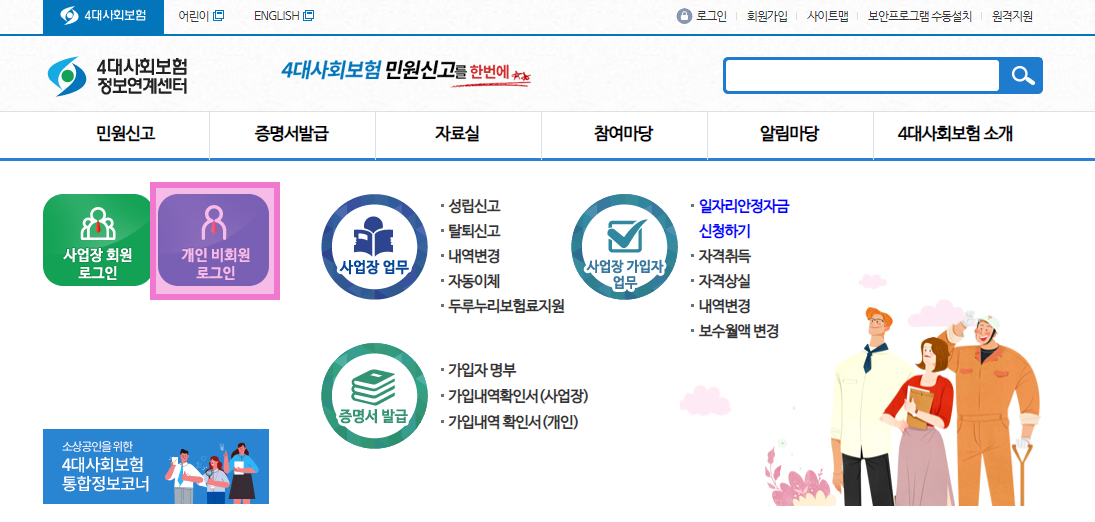 1. 4대 사회보험 정보연계센터 사이트에 로그인