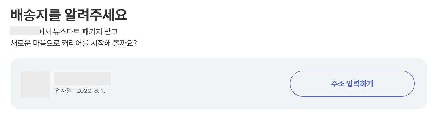 그냥 이직을 한 것만으로도 기분이 좋은데 합격보상금과 뉴스타트 패키지까지 보내준다니... 감동🥲 개인정보를 입력하기 전에 먼저 어떤 뉴스타트 패키지를 받을 것인지 선택해야 한다.