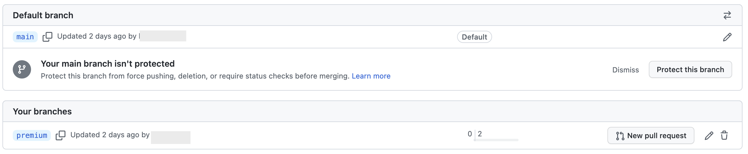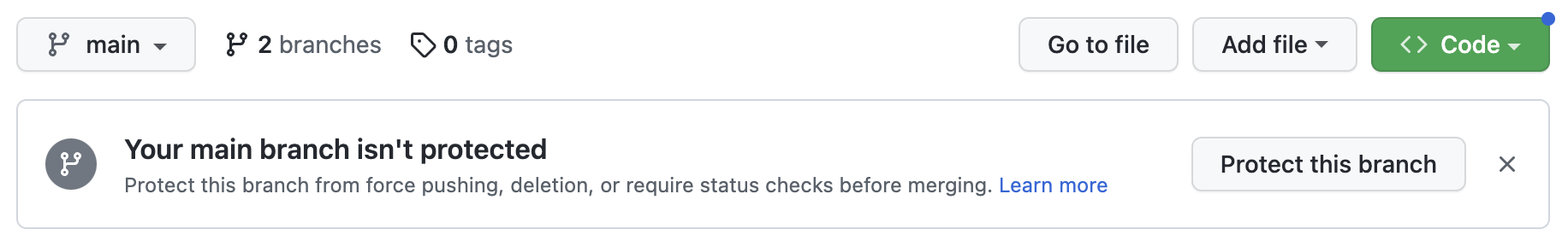 2 branches 라고 브랜치 갯수가 표시되어 있었다.
