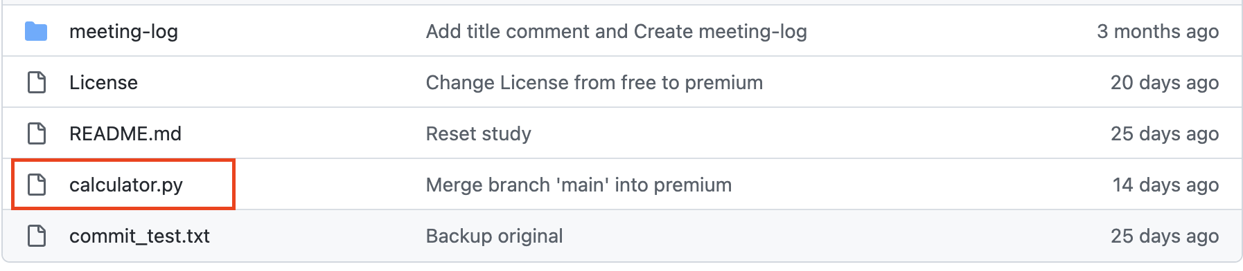Github에서 누군가(?)가 calculator.py 파일을 수정했다.