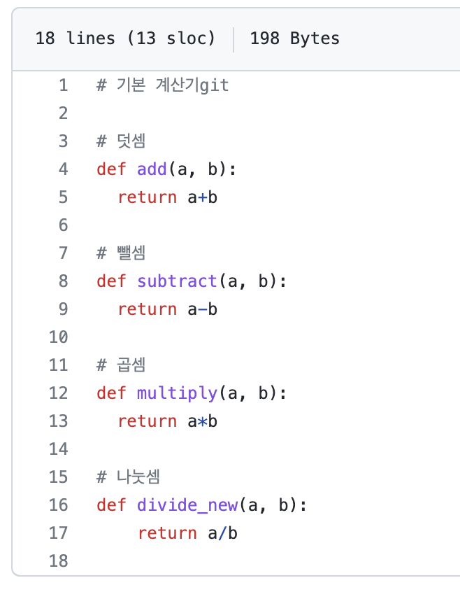 다시 깃허브로 이동해서 수정한 파일을 열어보니, 코드가 삭제된 버전으로 잘 바뀐 것을 확인할 수 있었다.