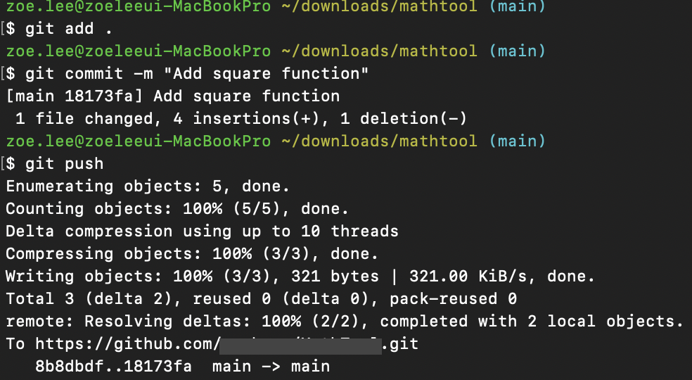 하지만 (origin/main)이 가리키고 있는 커밋은 여전히 예전 커밋이었다. (당연하지?) 다시 git push를 해서 리모트 레포지토리에도 업로드해 주었다.
