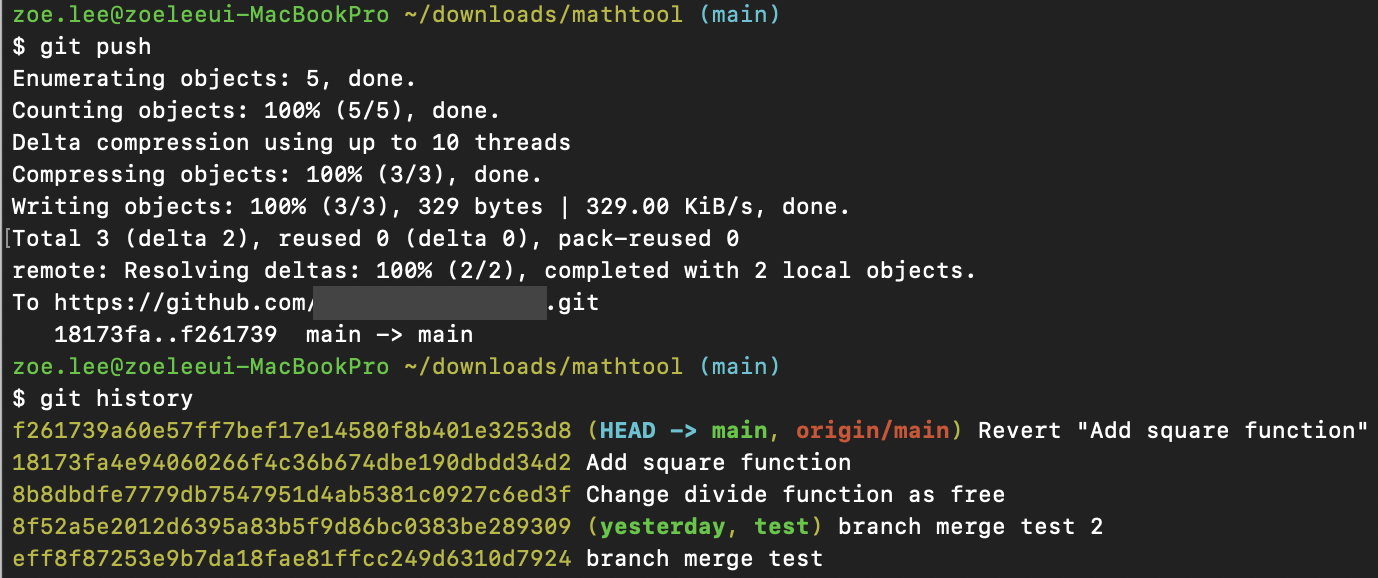로컬 레포지토리에서 작업하고 깃허브에 push까지 완료했는데 취소해야 하는 상황이 발생한다면... 이럴 때 사용하는 명령어가 있다.