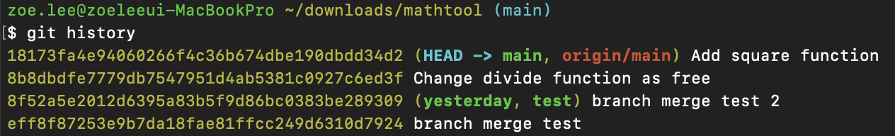 cf. 위에서 사용한 git history라는 명령어는 원래 git에서 사용하는 명령어가 아니다. 빠른 작업을 위해 직접 세팅한 것인데, 이것을 더 자세히 알고 싶다면 아래 링크를 클릭하면 된다.
