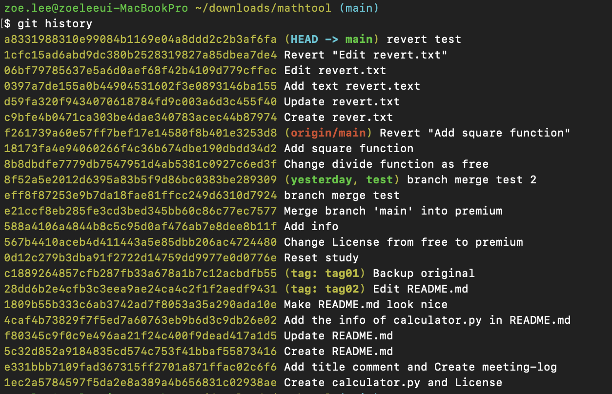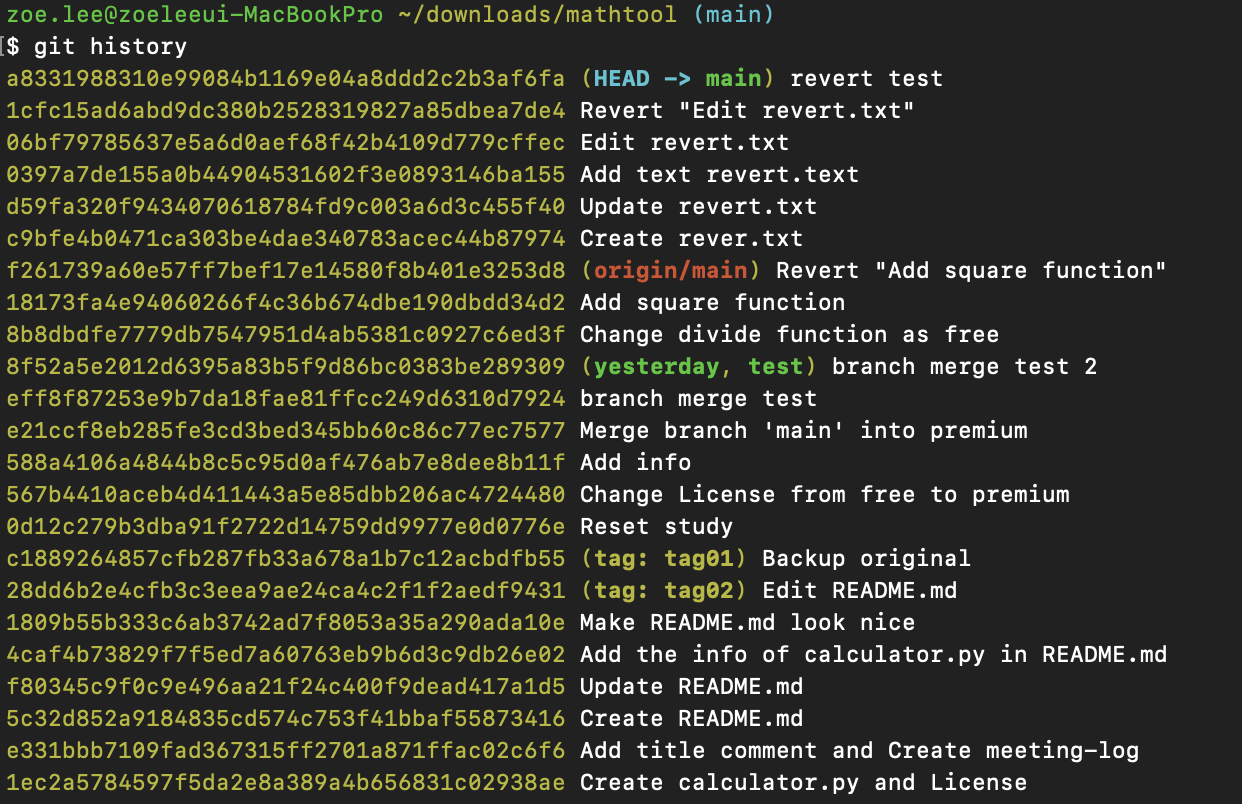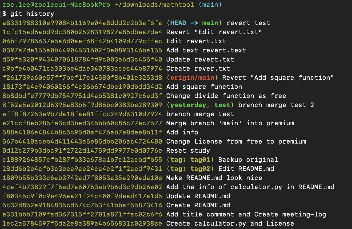 cf. 여기서 사용한 git history는 개인적으로 자주 사용하는 명령어인 git log --pretty=oneline을 aliasing한 것이다. 자세히 알고 싶다면 아래 링크를 클릭하면 된다.