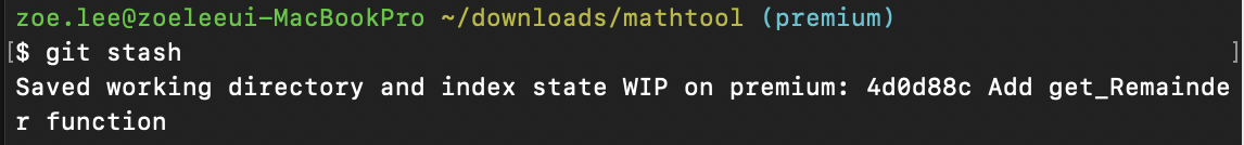 다시 git stash로 돌아와서... 해당 커맨드를 실행하면 Saved working directory and index state WIP on ~ 이라는 문구와 함께 코드가 저장된다.