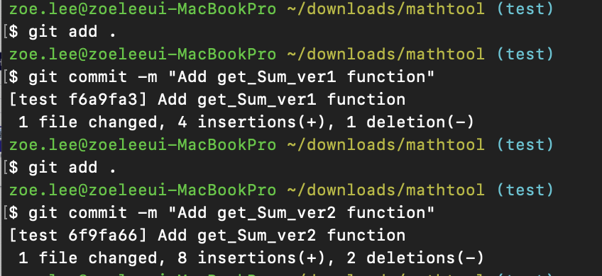 test 브랜치에서 두개의 작업을 수행하고 각각 커밋했다. (커밋 순서 : Add get_Sum_ver1 function → Add get_Sum_ver2 function) 그리고 나서 다시 premium 브랜치로 이동해서 test 브랜치를 합치려고 했는데(머지) 두번째 커밋은 반영하지 않고 첫번째 커밋만 반영해야 하는 상황이 되었다.
