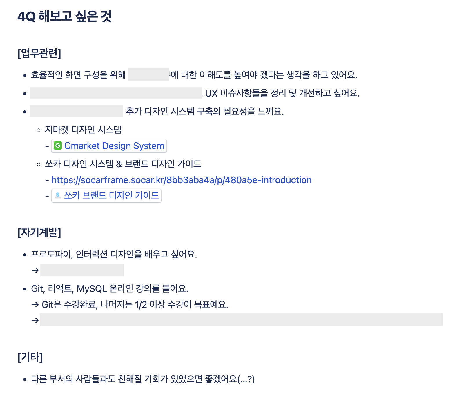 회사에서 3분기 회고를 하며 4분기 목표에 대해 아래와 같이 적어서 공유했다.