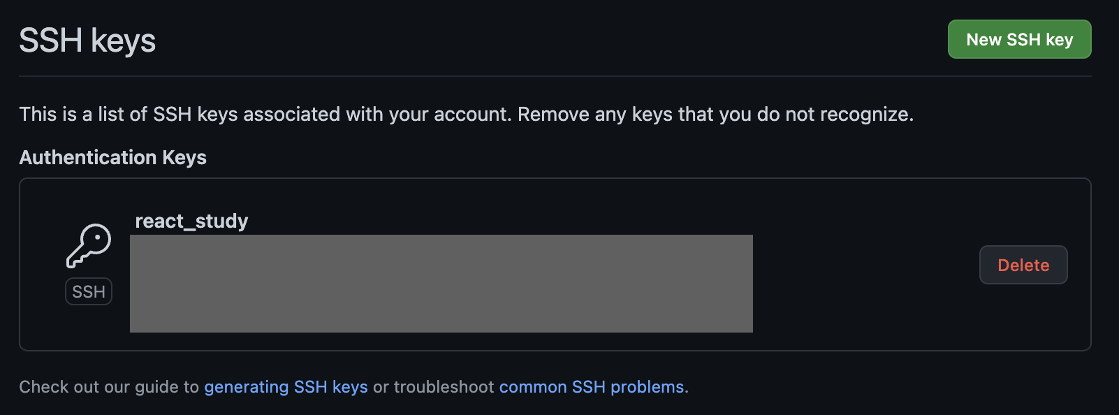 SSH Key가 제대로 등록된 것을 확인할 수 있다.