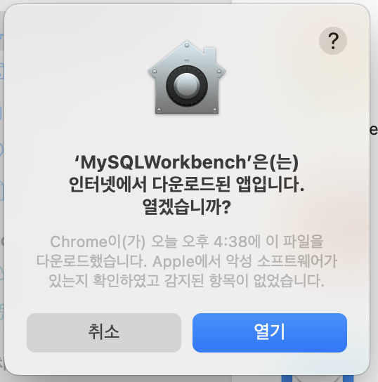 이 프로그램을 더블클릭하여 실행해 본다. 인터넷에서 다운로드된 앱인데 열겠냐는 팝업이 뜬다. 열기 버튼 선택!