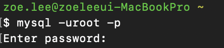 비밀번호 설정 후에 로그인을 하고 싶으면 mysql -uroot -p 라고 입력한다. 그 후 Enter password: 메세지가 나오면 비밀번호를 입력하고 엔터치면 된다.