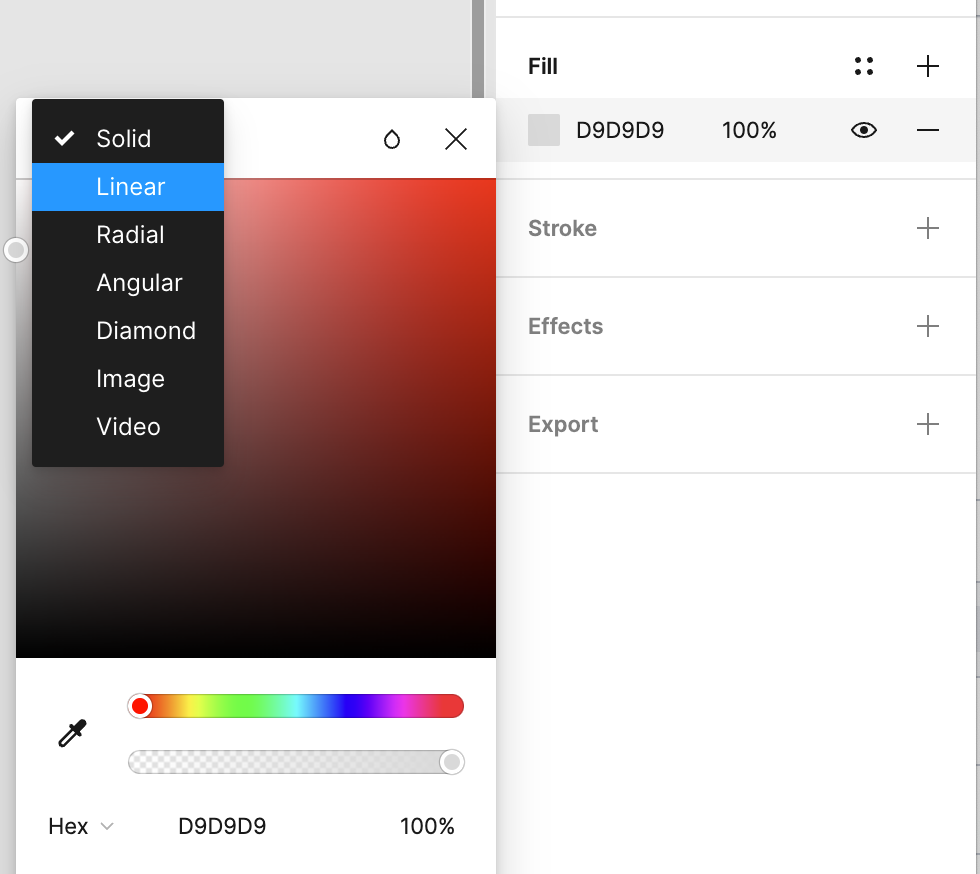 푹신하고 친근한 느낌을 주기 위해 모서리를 평소보다 좀 더 둥글게 처리했다. 그 다음 버튼 배경에 그라데이션 색상을 적용한다. 그라데이션을 적용하려면 Fill > Solid 라고 되어 있는 부분을 Linear로 변경해야 한다.