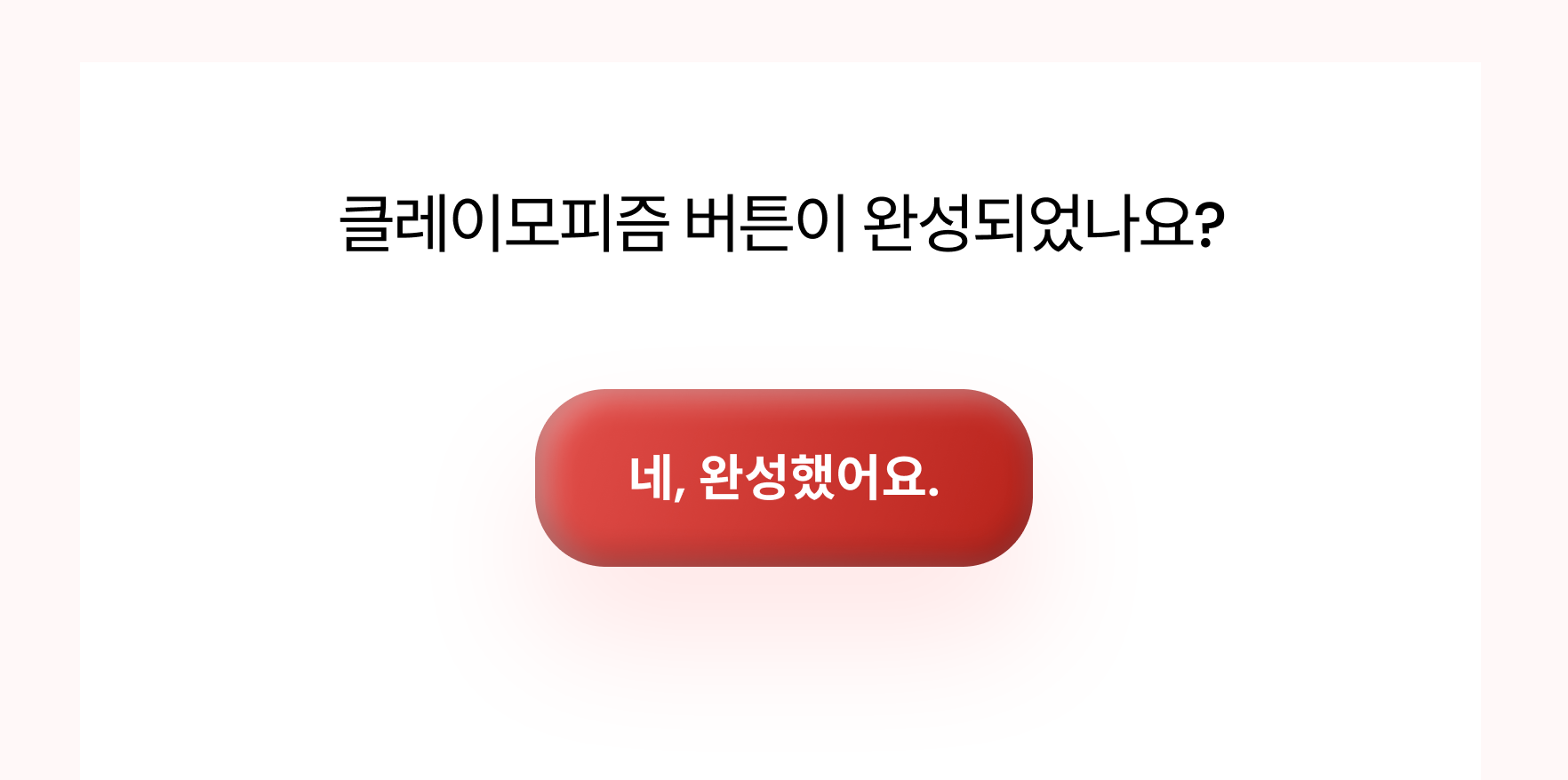 그림자까지 설정을 마치고 나면 끝! 클레이모피즘 스타일의 버튼이 완성되었다.
