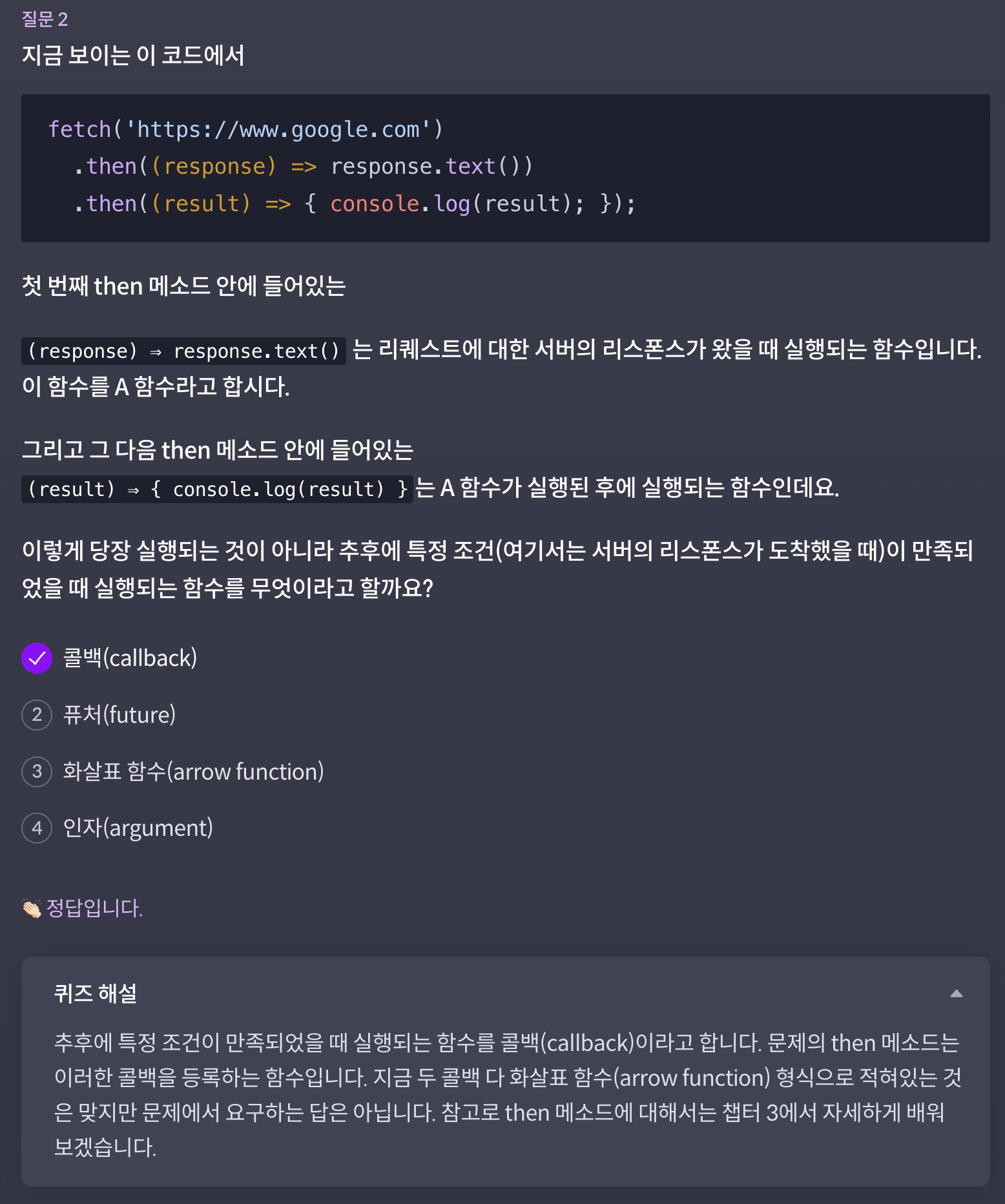 강의를 듣고 나서 마무리는 퀴즈와 실습으로! 코드잇 커리큘럼은 강의 사이에 퀴즈와 실습으로 아직까지 배운 내용을 복습할 수 있도록 되어 있어서 더욱 마음에 든다.