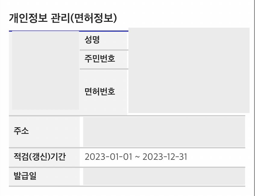 운전면허증에 사용된 사진과 성명, 주민번호, 면허번호, 주소, 적성검사(갱신)기간, 발급일 등 조금 더 자세한 정보들을 확인할 수 있다.