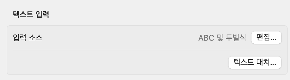 키보드 설정 화면의 텍스트 입력 항목에서 입력 소스 우측의 '편집' 버튼을 클릭한다.