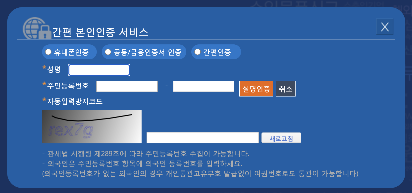 "개인통관고유부호발급"은 간단한 본인인증 후 이용 가능 합니다.