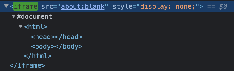 아이프레임은 inline frame 이라는 의미이다. 간단하게 설명하자면 html 문서 안에서 또 다른 html 문서를 보여주는 역할을 한다. 개발자 도구를 열어서 보면 <iframe> 태그 안에는 <html>, <head>, <body> 태그가 모두 들어있는 것을 확인할 수 있다.