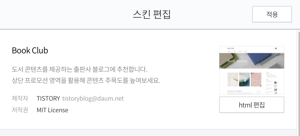 그러면 스킨 편집 창이 새로 뜰 것이다. 화면의 오른쪽 부분에서 'html 편집' 버튼을 누른다.