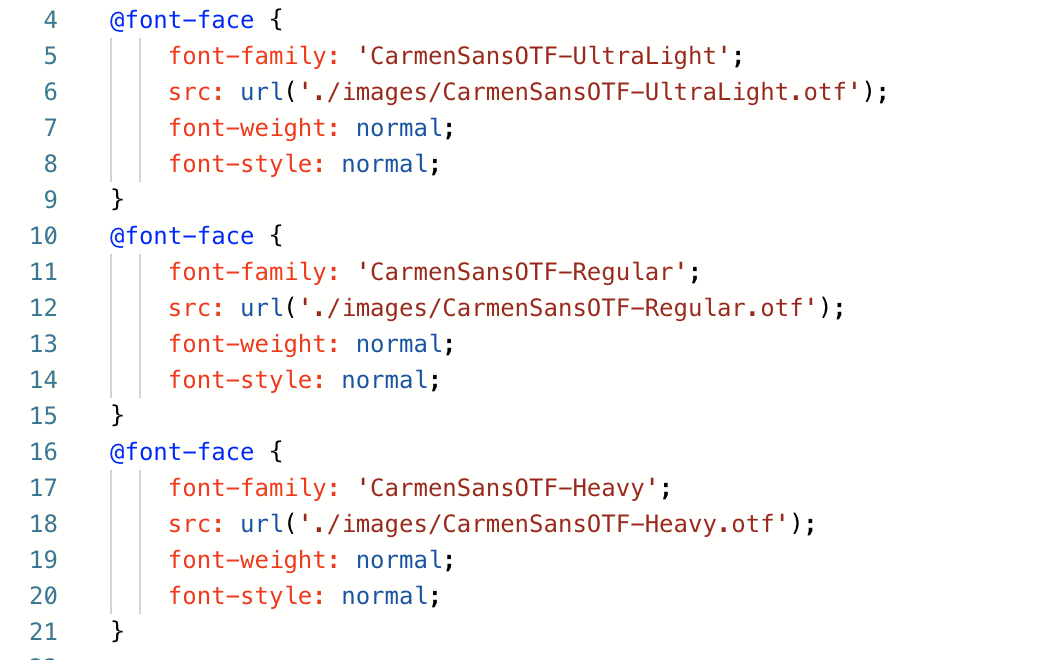 업로드한 폰트가 여러개라면 각각 입력해준다.