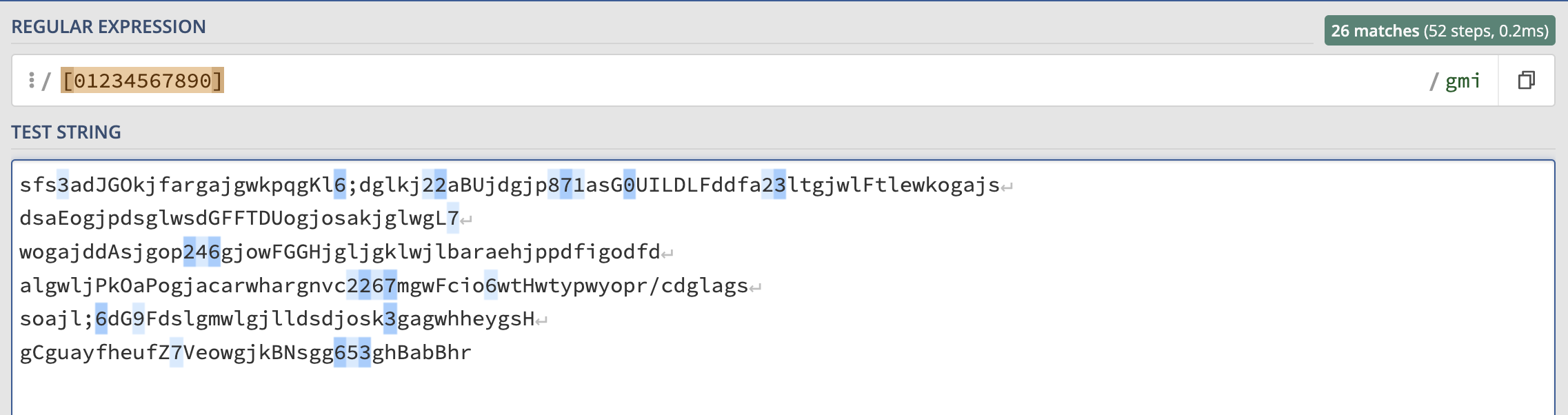 ex) 문장에 있는 모든 숫자를 정규 표현식으로 [0123456789]